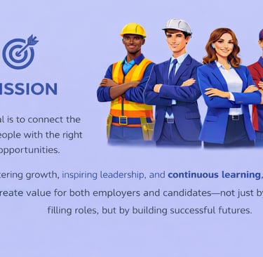 Our vision is to provide an invaluable service to businesses across the world. They find skilled and qualified people to fill positions for companies Growth and Expansion. To provide a total placement solution with the high-quality talent for our corporate clients.
